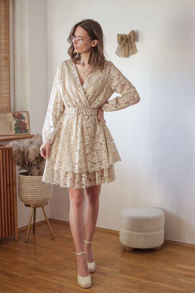 Materiał prześwituje, jednak w związku z tym, że jest go bardzo dużo i „zbiera się ” na spódnicy nie jest to mocno zauważalne.