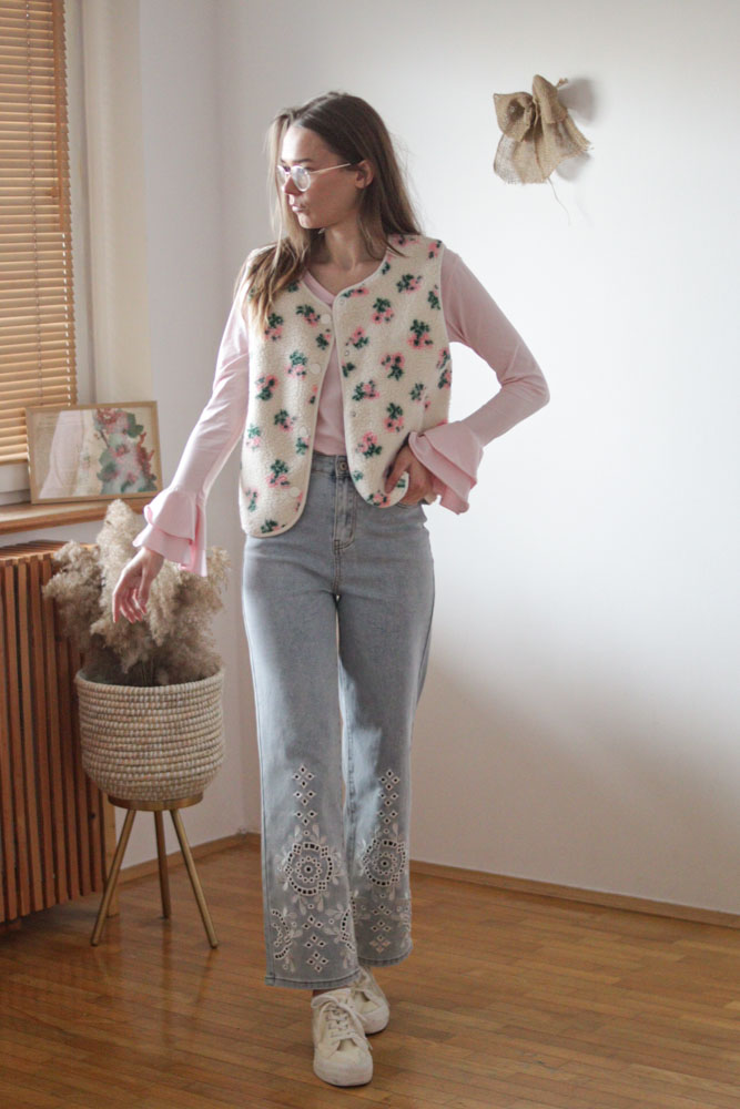 Na zdjęciach mam na sobie S i leżą idealnie – na dzień noszę XS/S, z jeansów najczęściej XS.