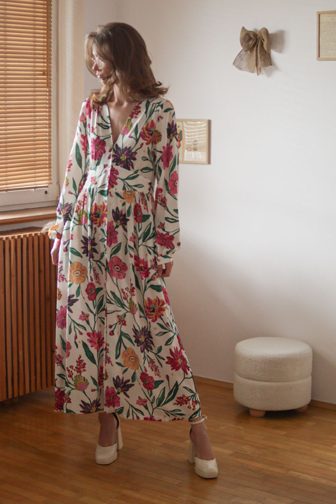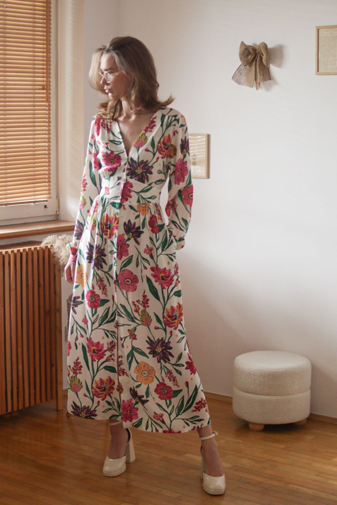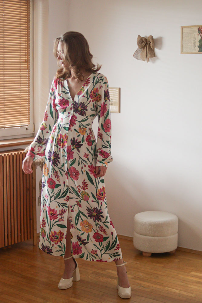 Modelka ma 174cm wzrostu i na co dzień nosi rozmiar XS/S, na zdjęciach rozmiar S/M.
