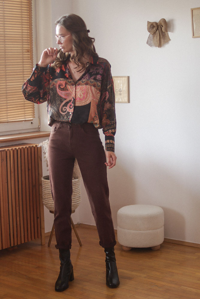 Modelka ma 174cm wzrostu i na co dzień nosi rozmiar XS/S, na zdjęciach rozmiar XS.