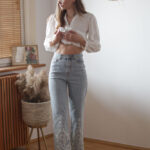 Amaranthus – jeansy z wysokim stanem i ażurowym wykończeniem na nogawkach