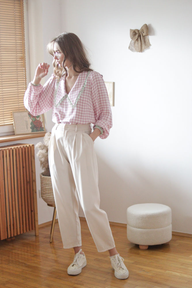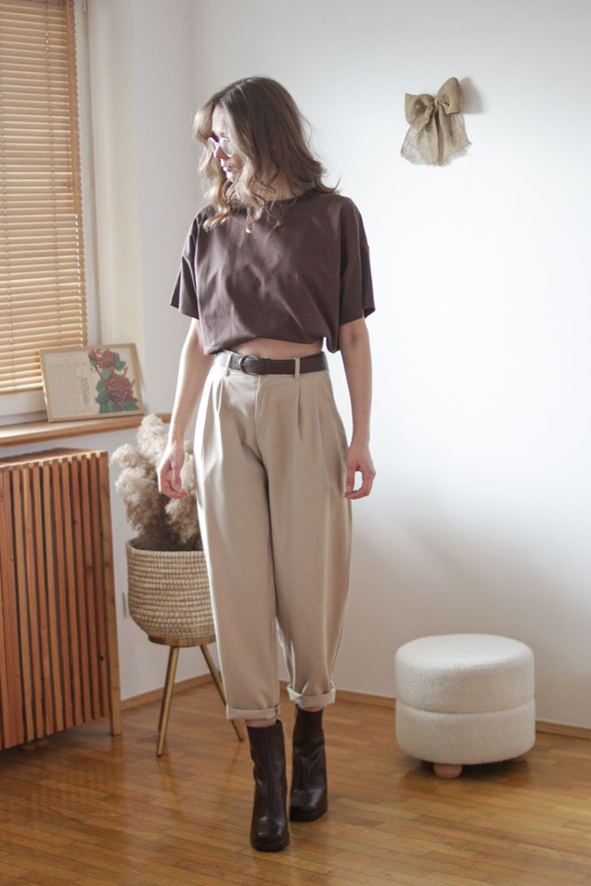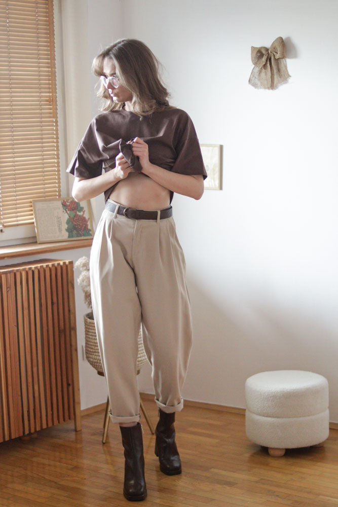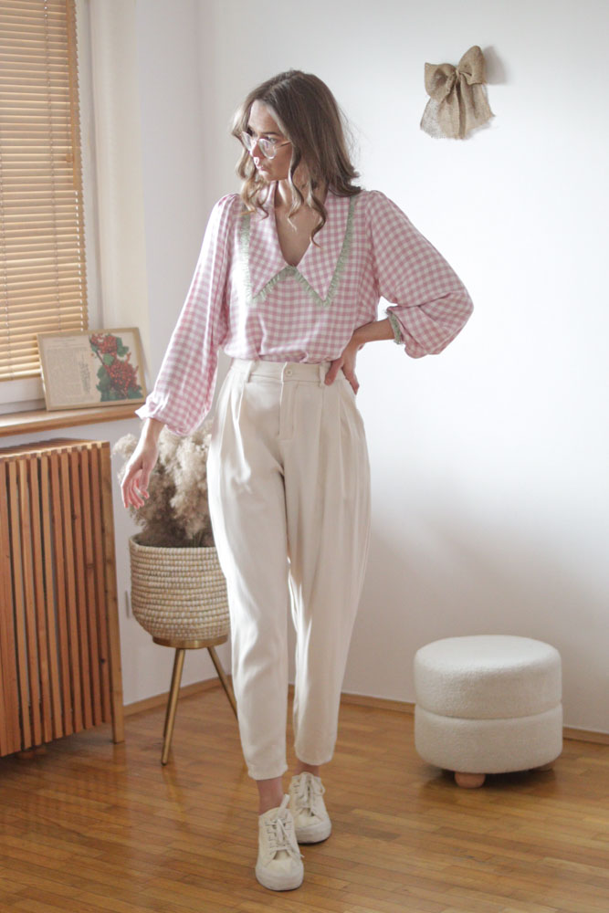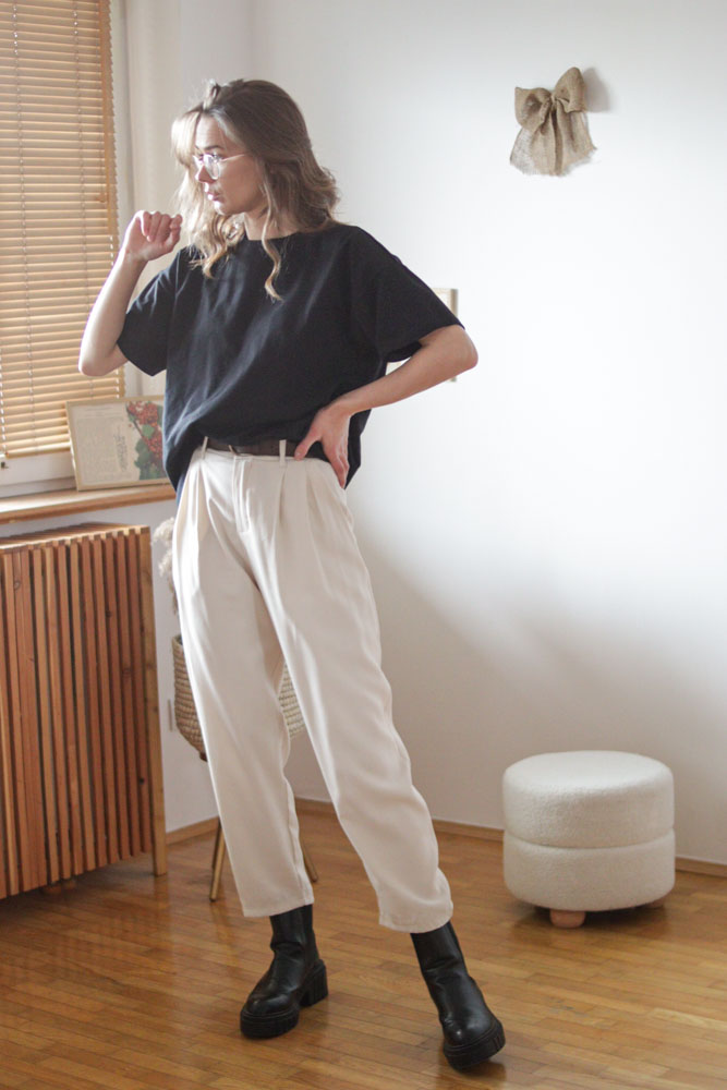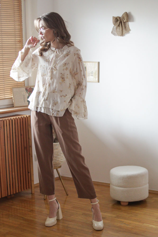 Modelka ma 174cm wzrostu i na co dzień nosi rozmiar XS/S, na zdjęciach rozmiar S.