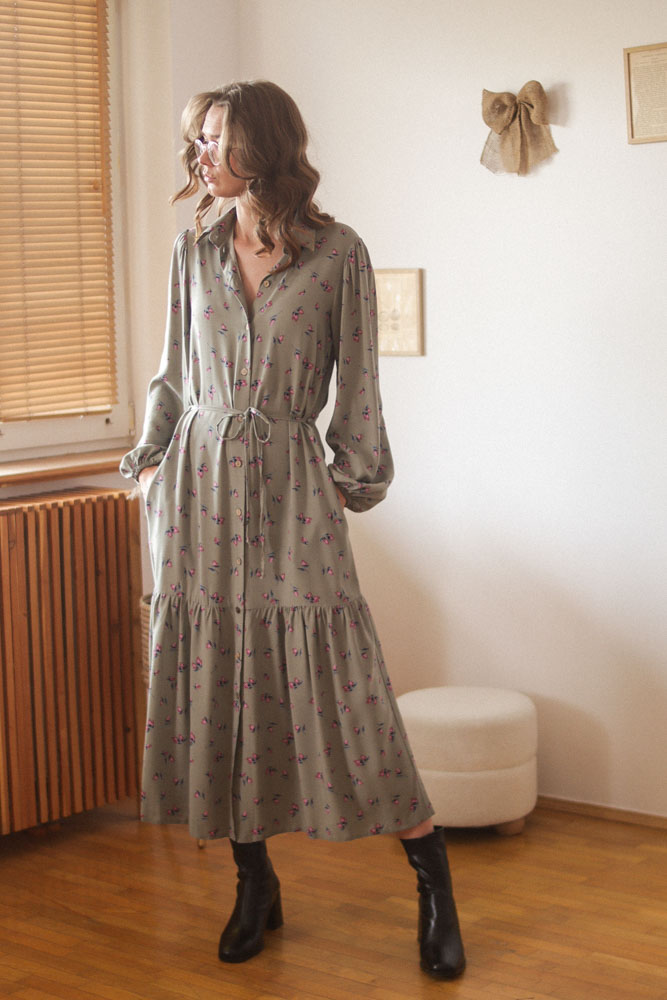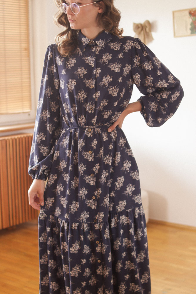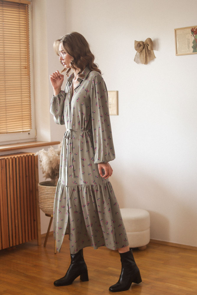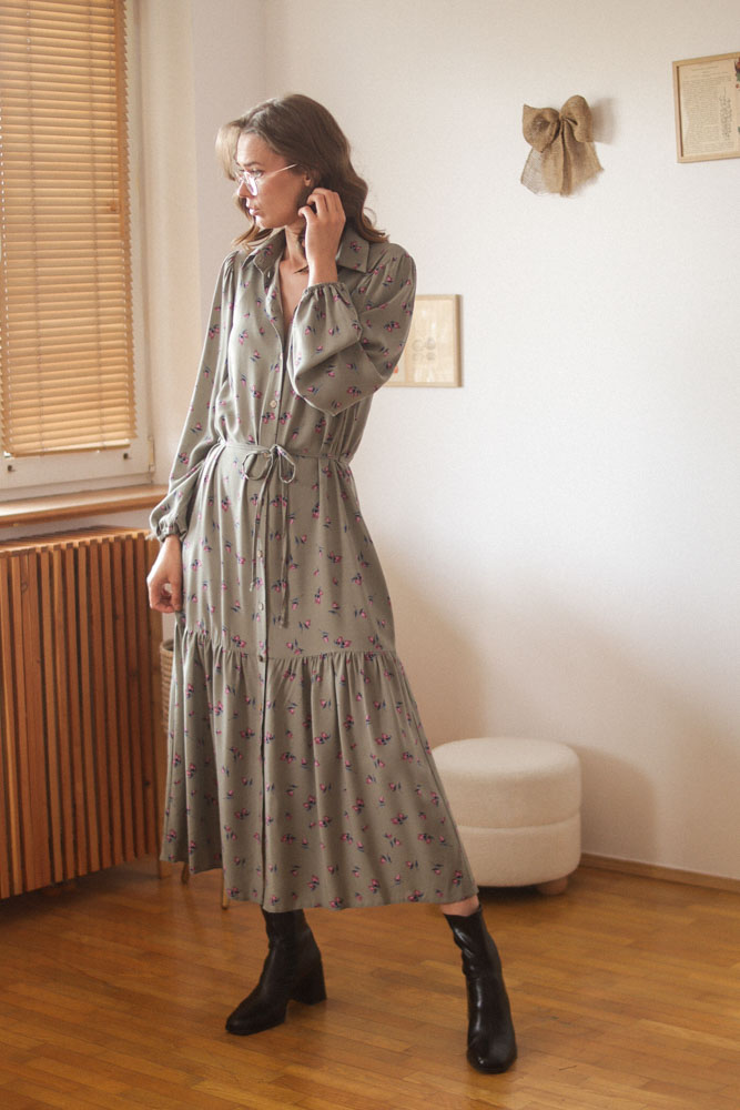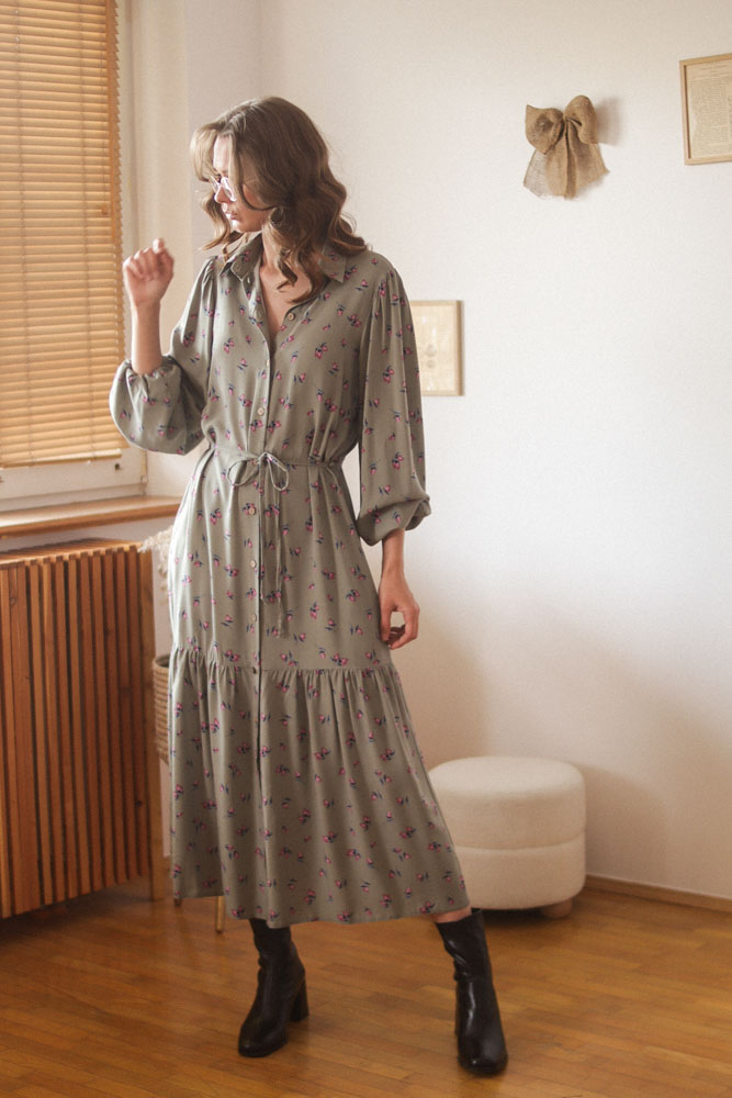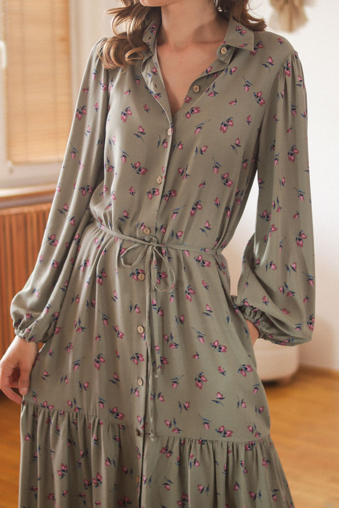 Calla - wiskozowa, długa sukienka z kołnierzykiem zapinana na guziki
