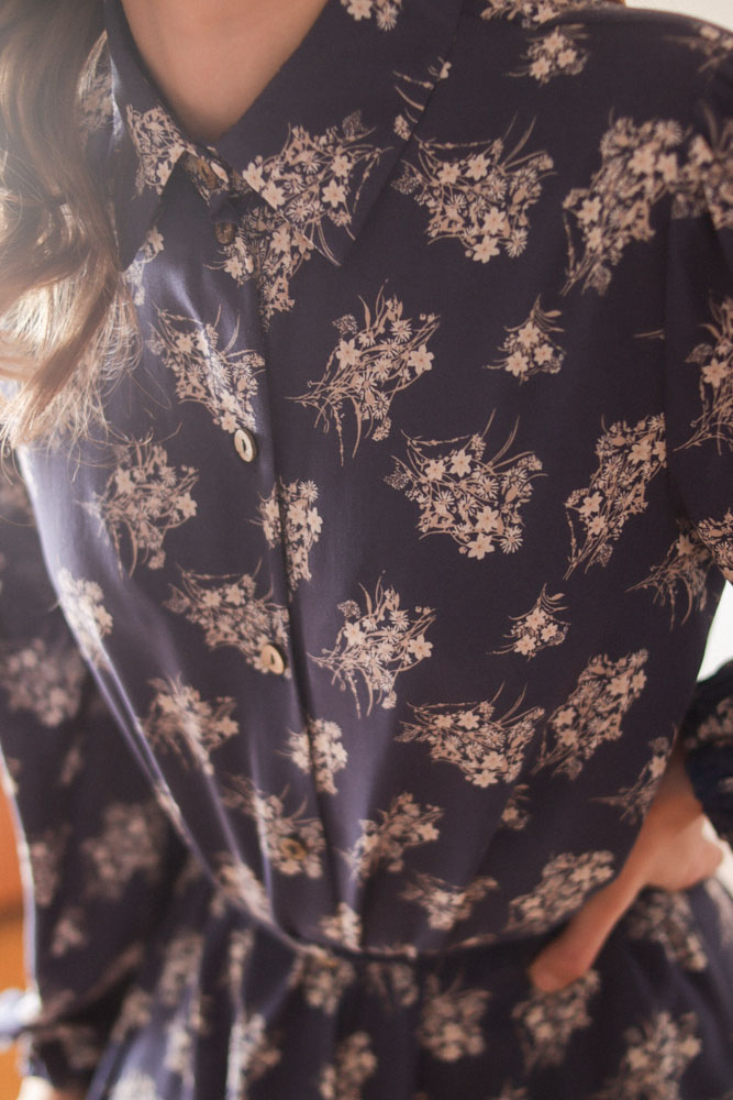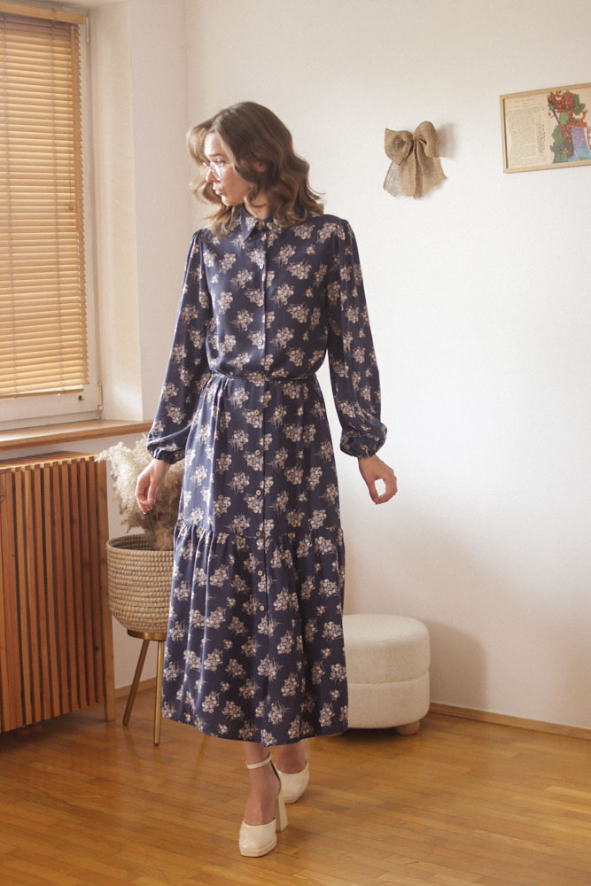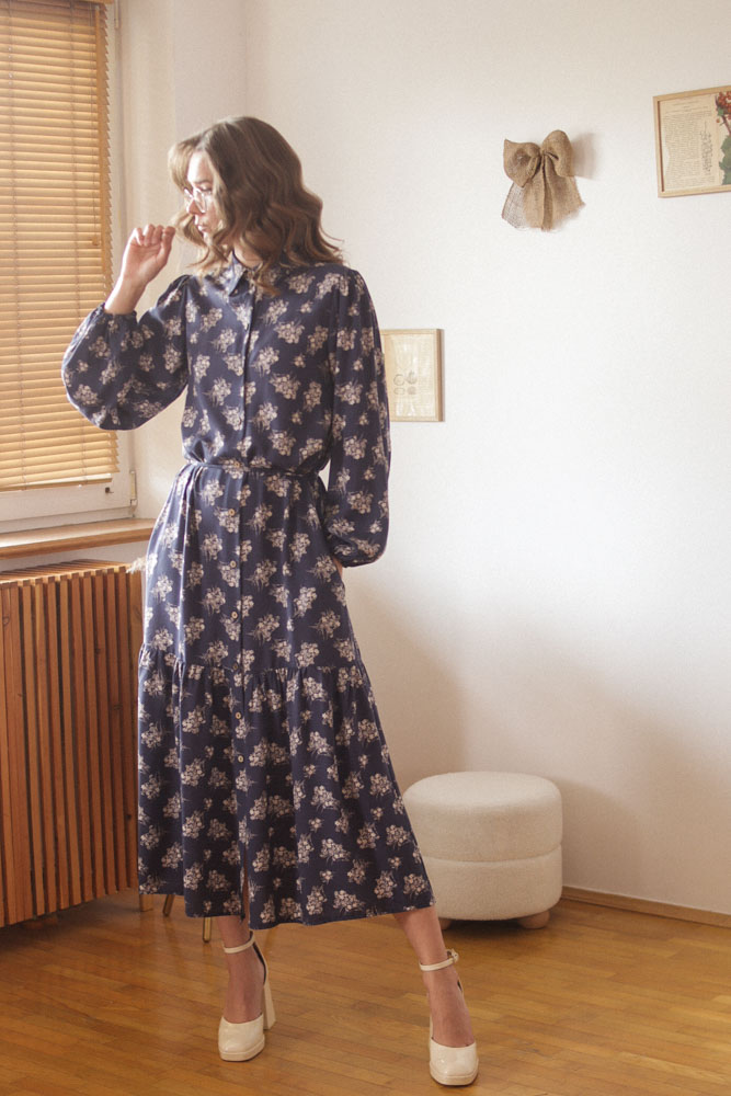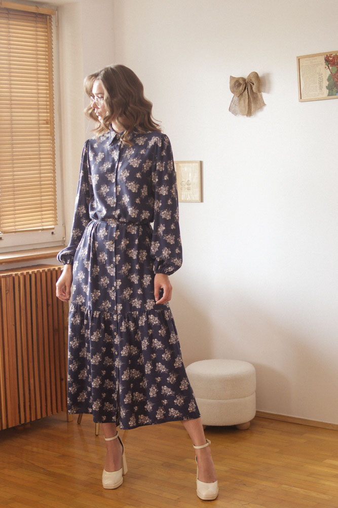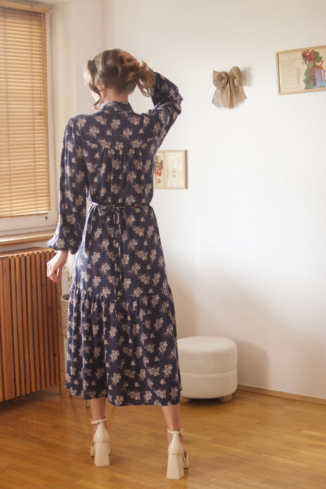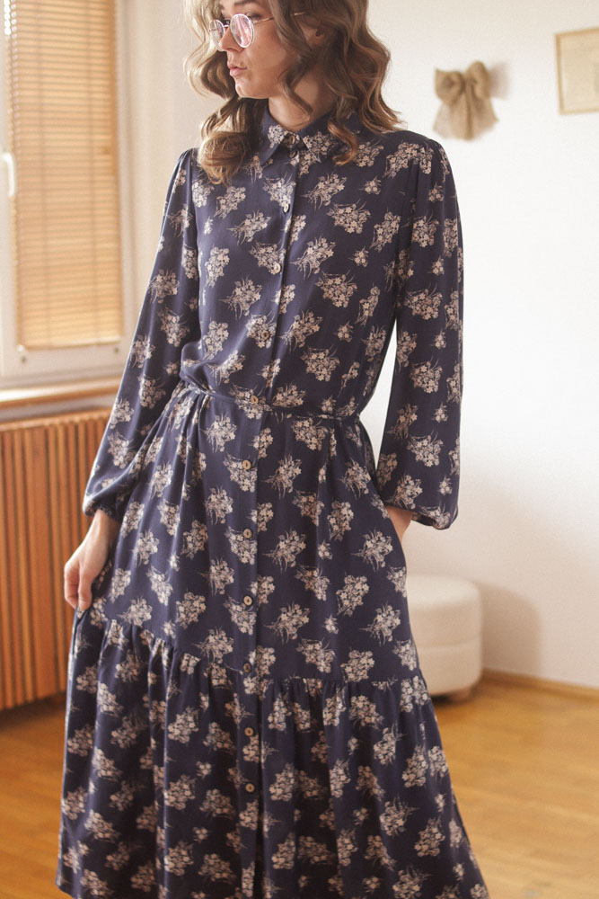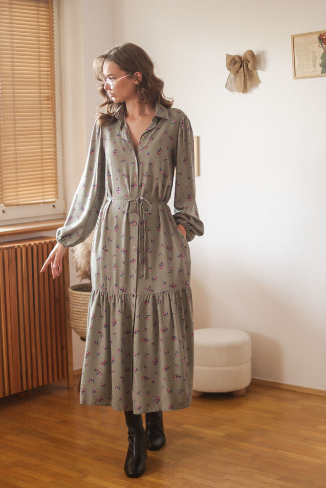 Calla - wiskozowa, długa sukienka z kołnierzykiem zapinana na guziki