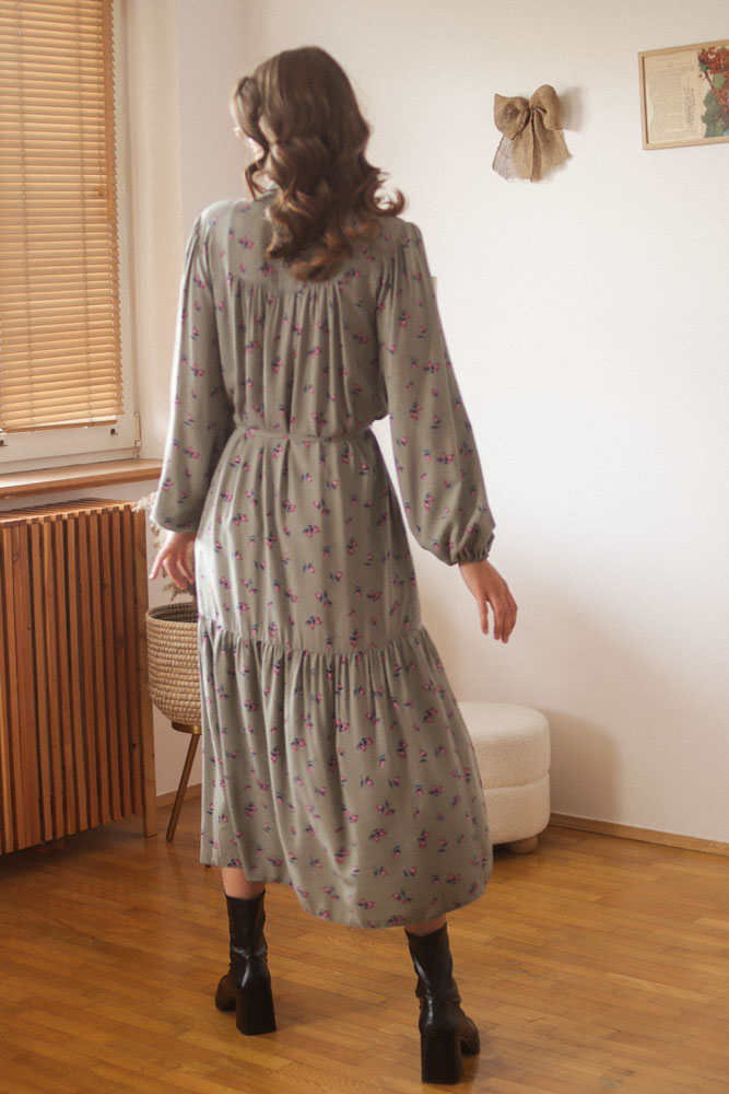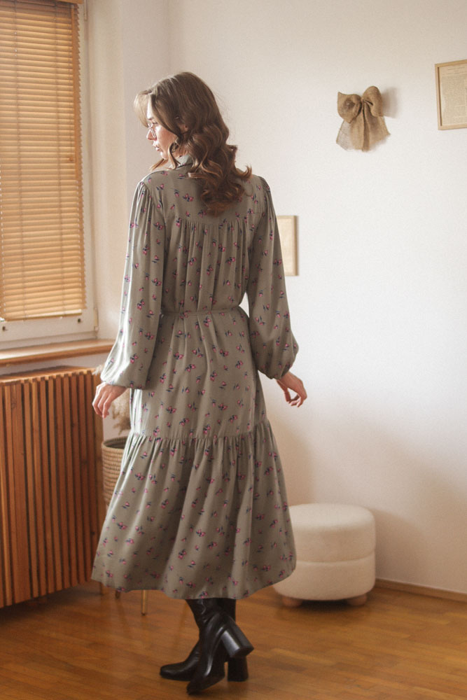 Calla – wiskozowa, długa sukienka z kołnierzykiem zapinana na guziki