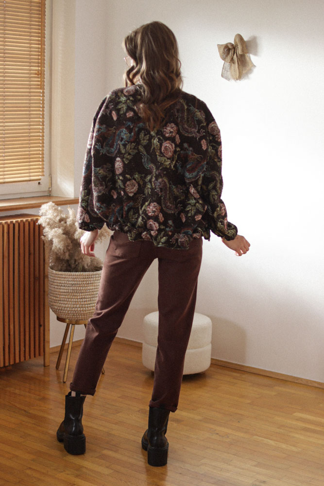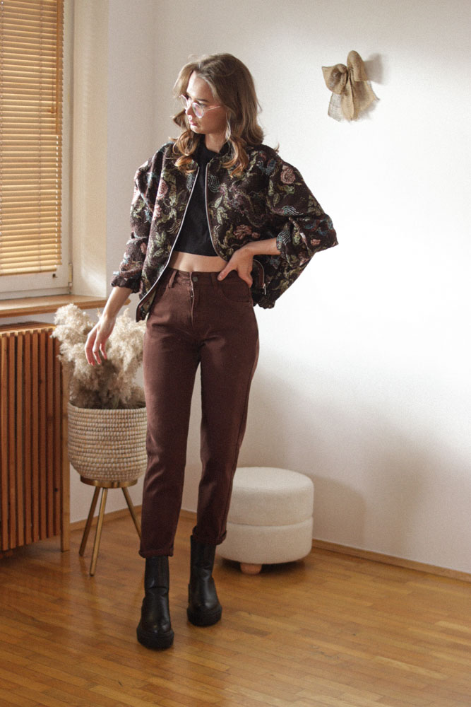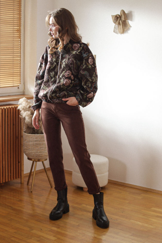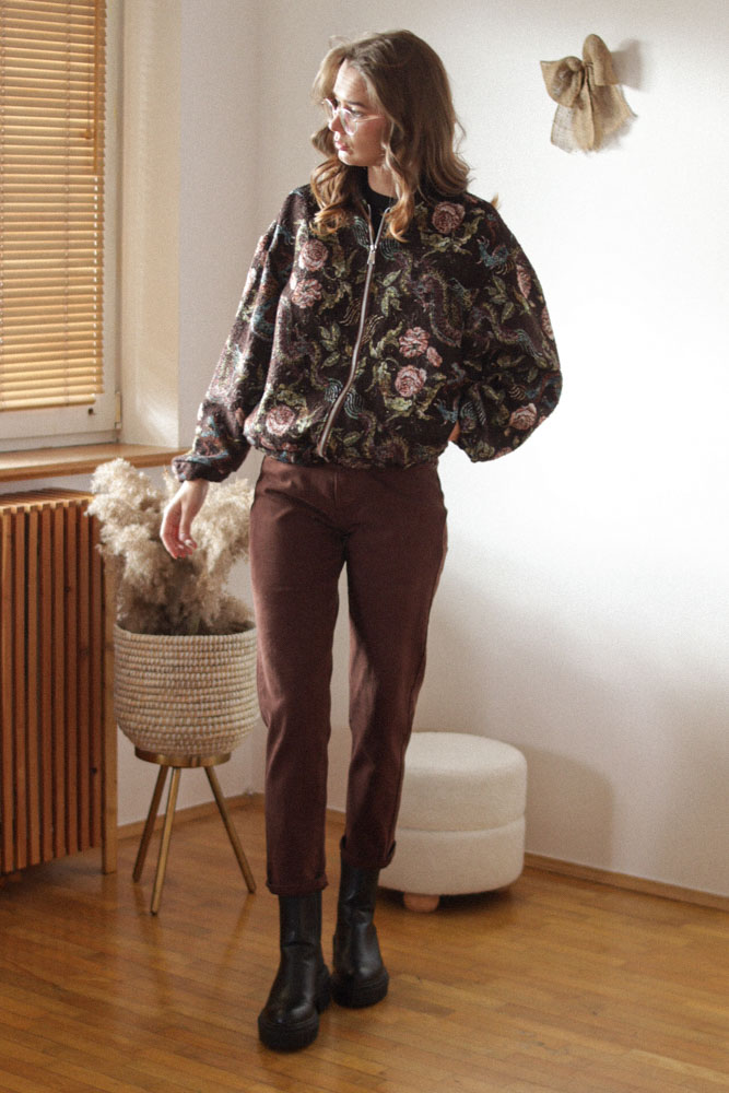 Mają kieszenie – z innego materiału, jest to „podszewkowy” materiał (poliester) – w wersji brązowej czarny, w wersji bordo -bordowy.