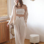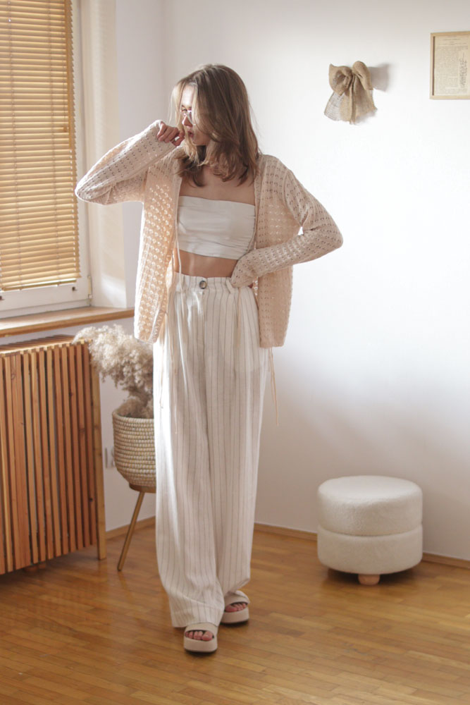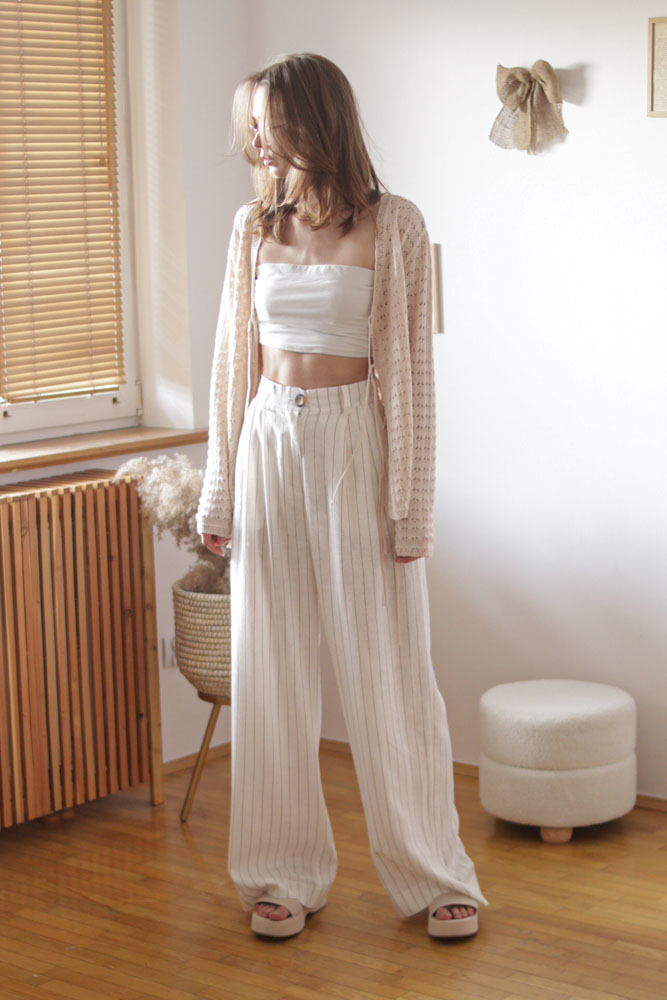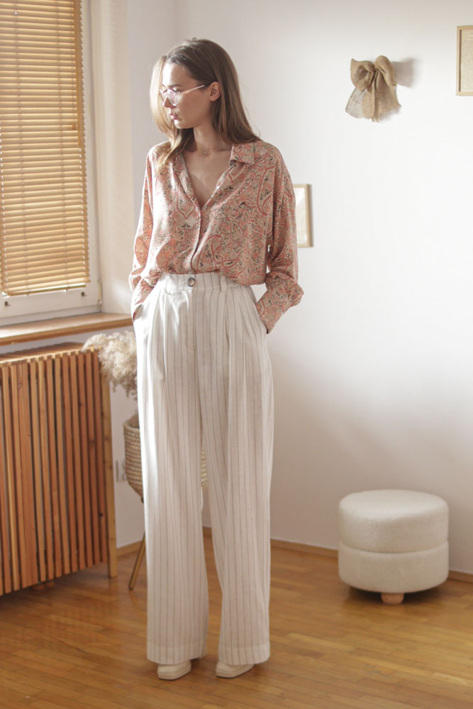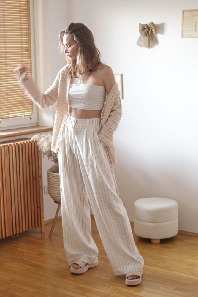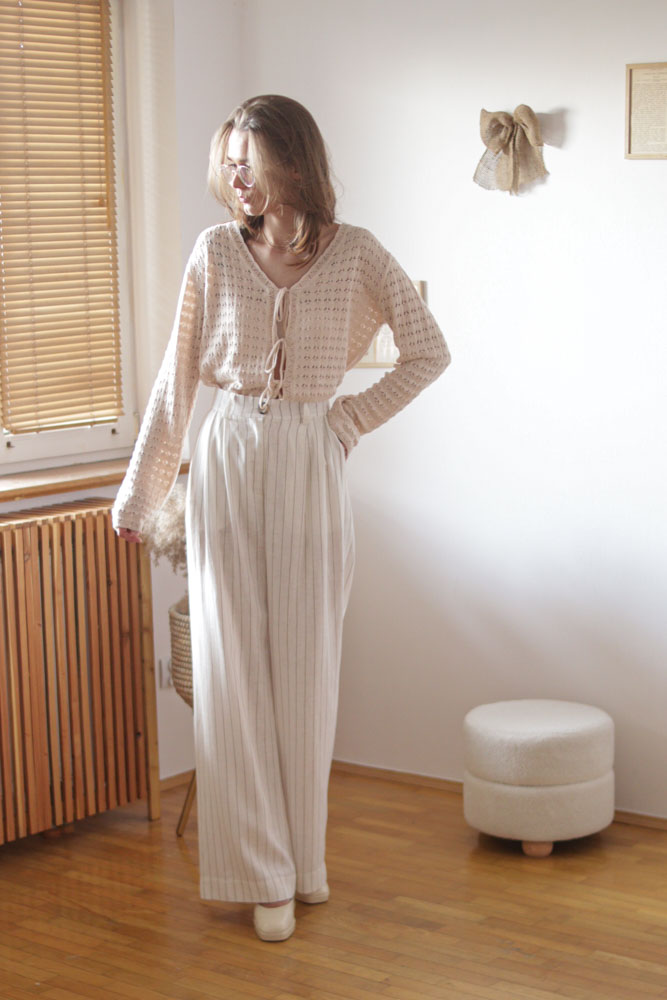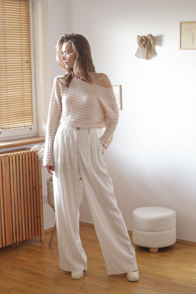 Modelka ma 174cm wzrostu i na co dzień nosi rozmiar XS/S, na zdjęciach rozmiar S.
