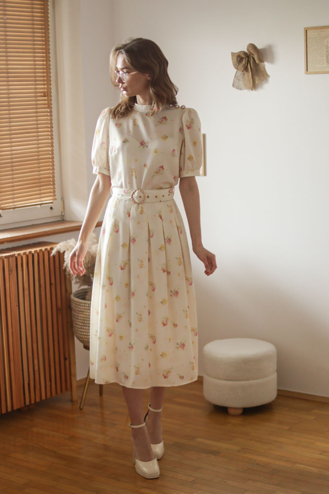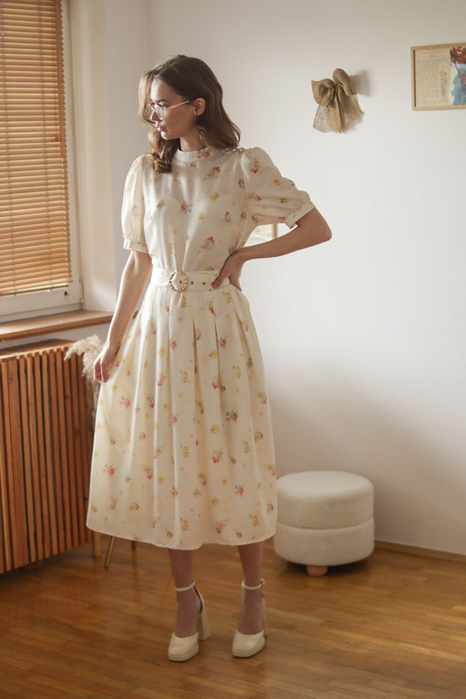 Modelka ma 174cm wzrostu i na co dzień nosi rozmiar XS/S, na zdjęciach rozmiar S.