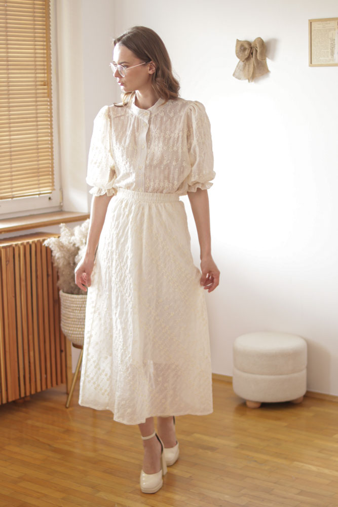 Modelka ma 174cm wzrostu i na co dzień nosi rozmiar XS/S, na zdjęciach rozmiar S/M.