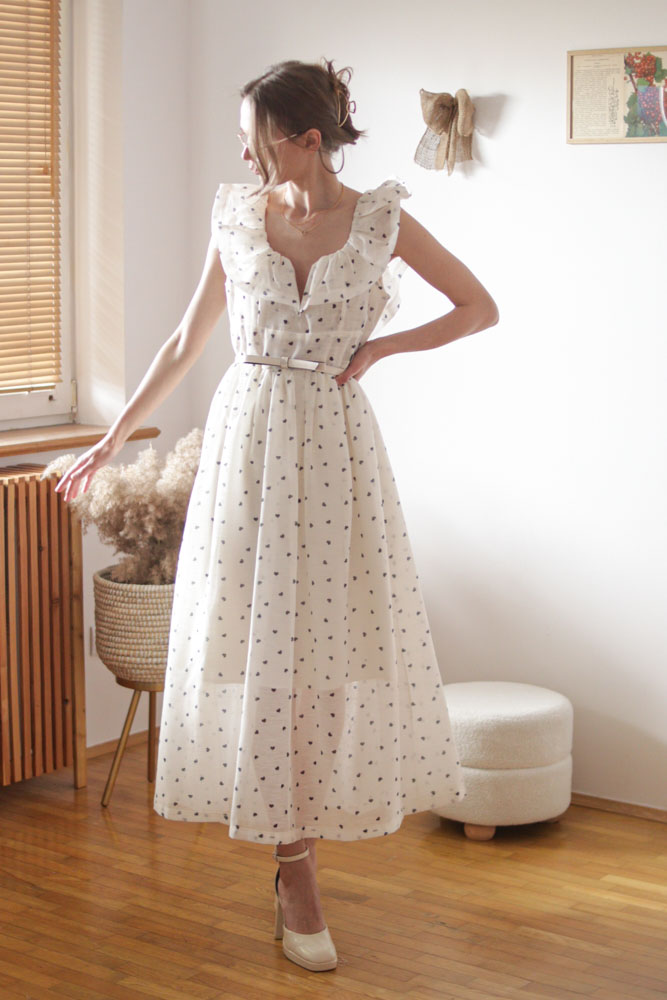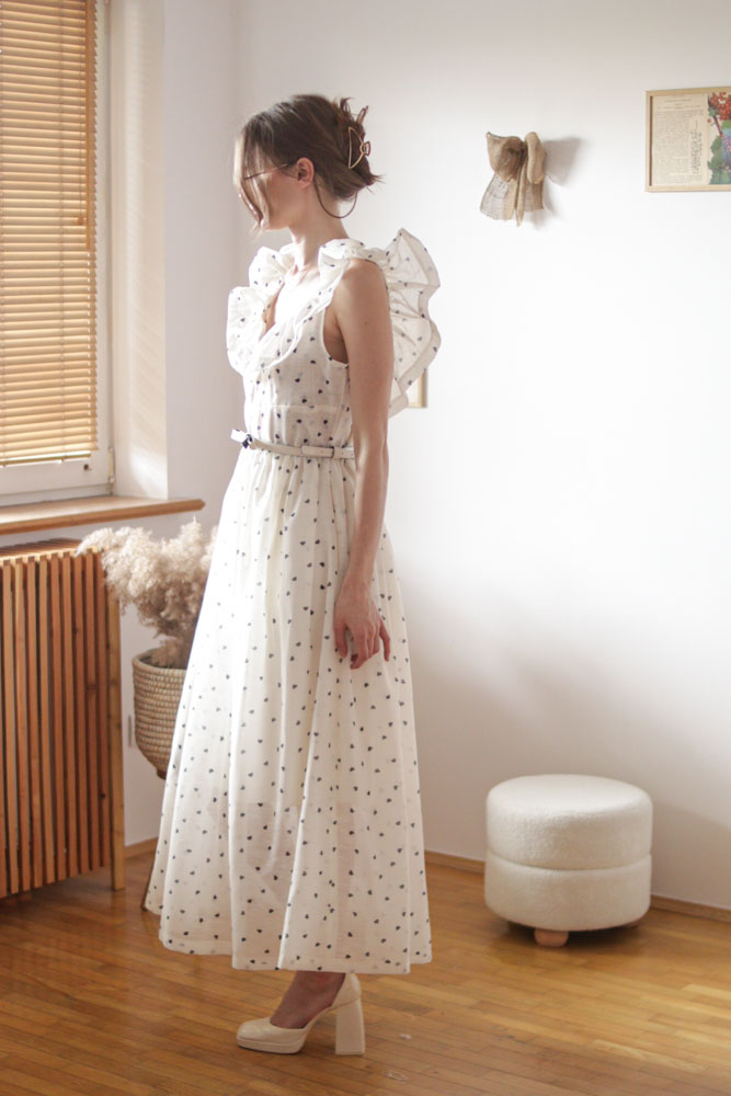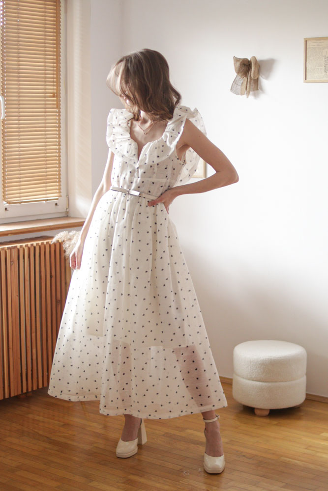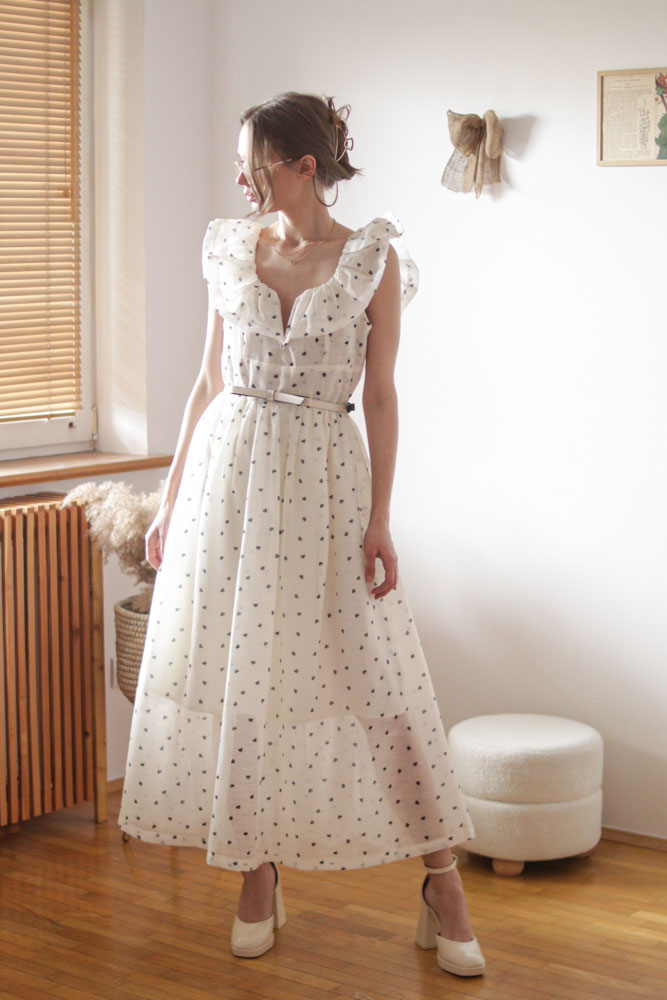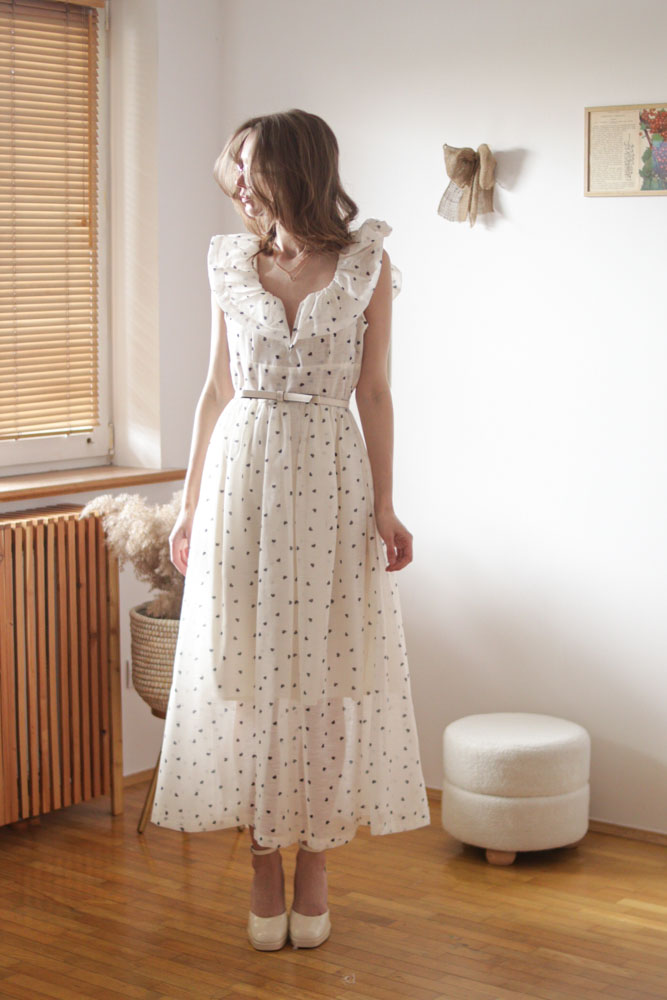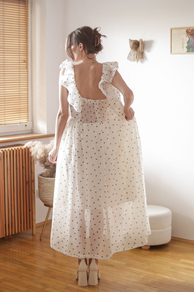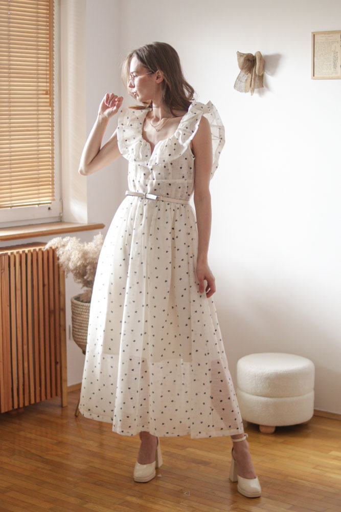 Modelka ma 174cm wzrostu i na co dzień nosi rozmiar XS/S, na zdjęciach rozmiar S/M.