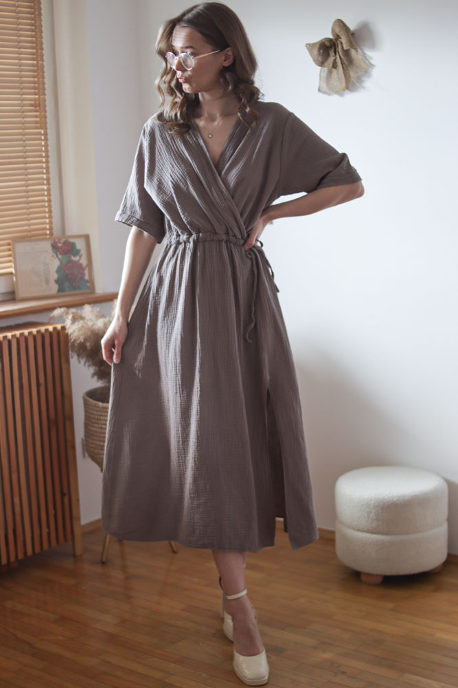 Fallopia – szyfonowa sukienka maxi z zakładkowym dekoltem