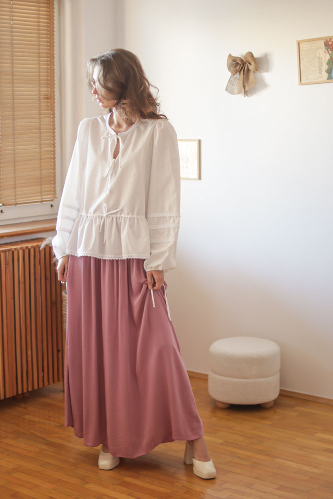 Modelka ma 174cm wzrostu i na co dzień nosi rozmiar XS/S, na zdjęciach rozmiar S/M.