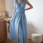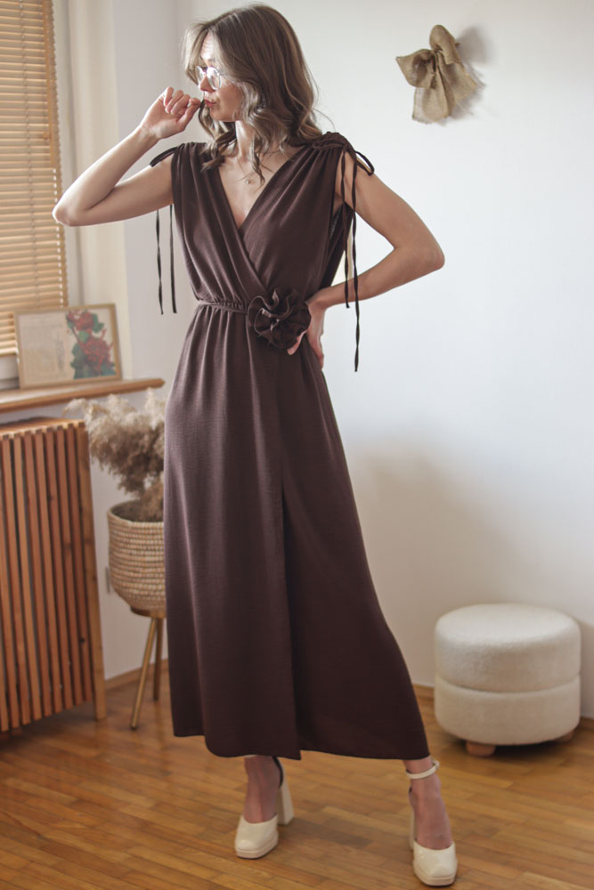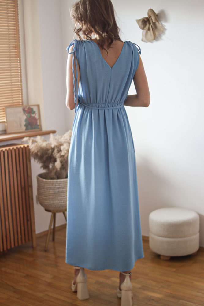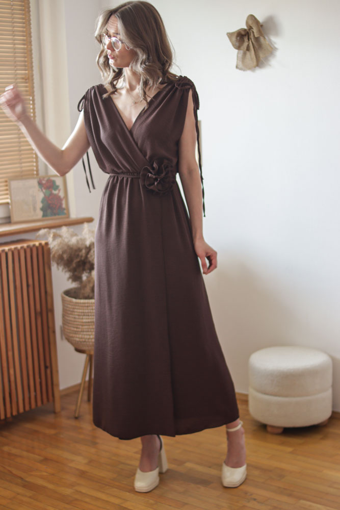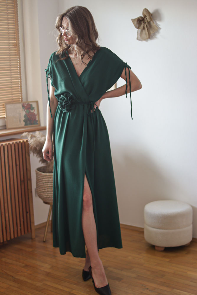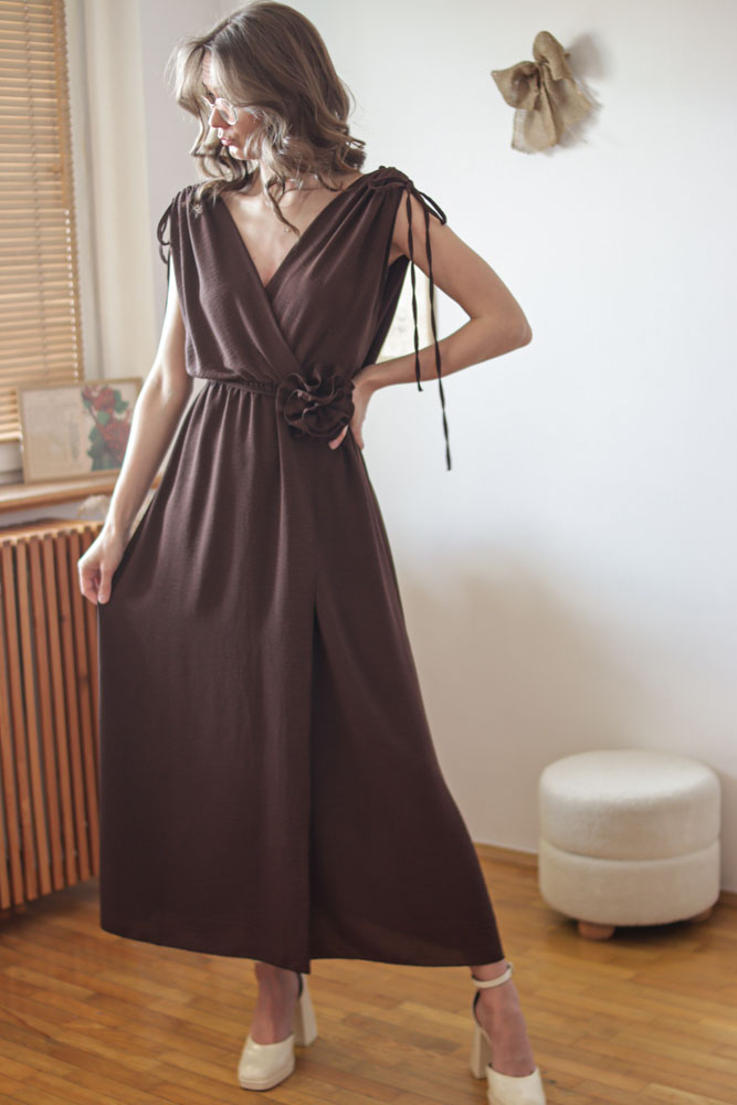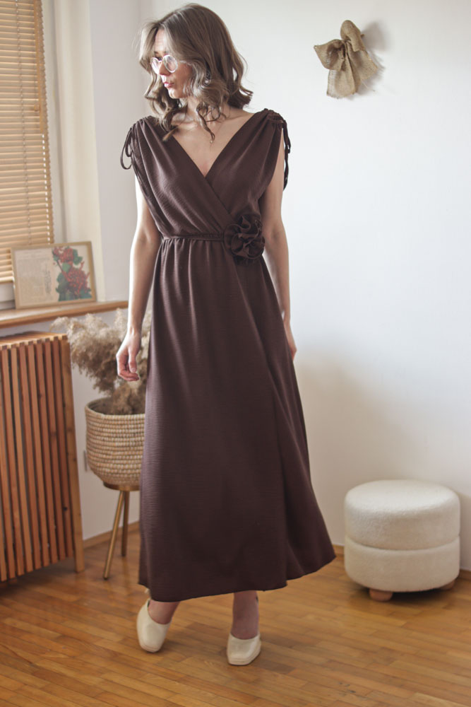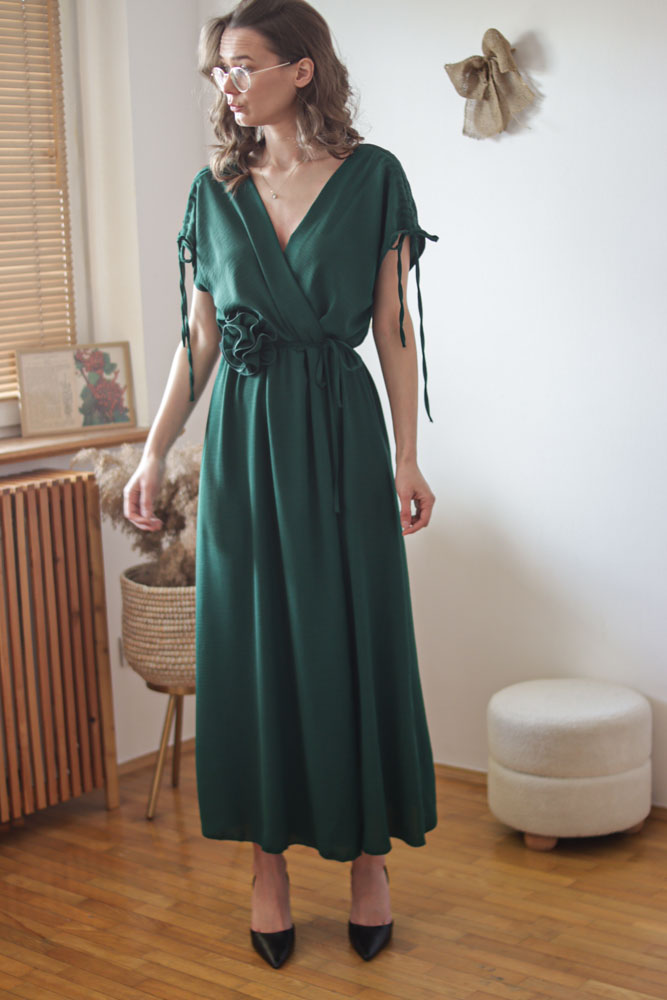 NewSukienki mają gumkę w talii/pod biustem + pasek – materiałowy „sznurek” z różą.