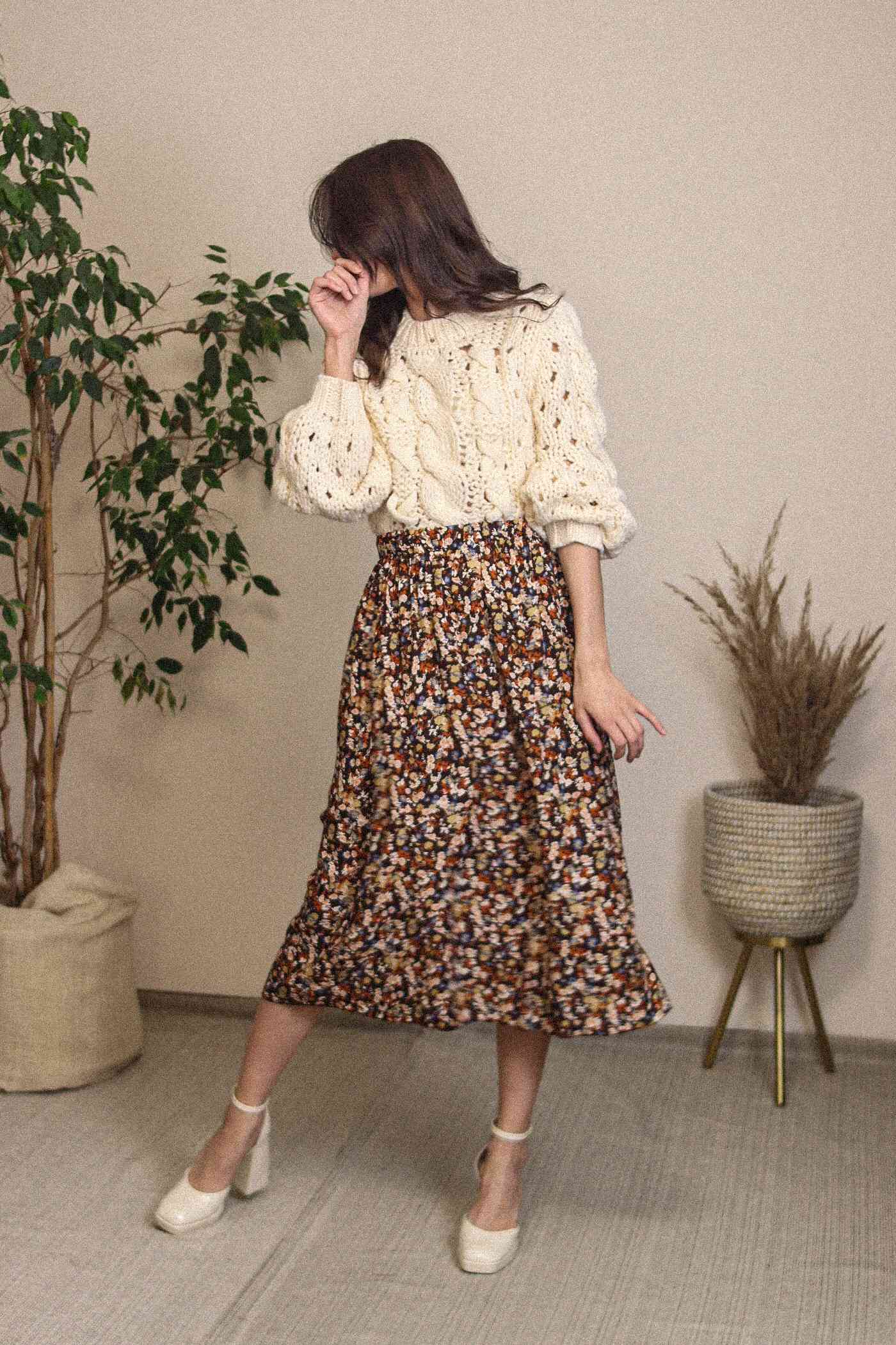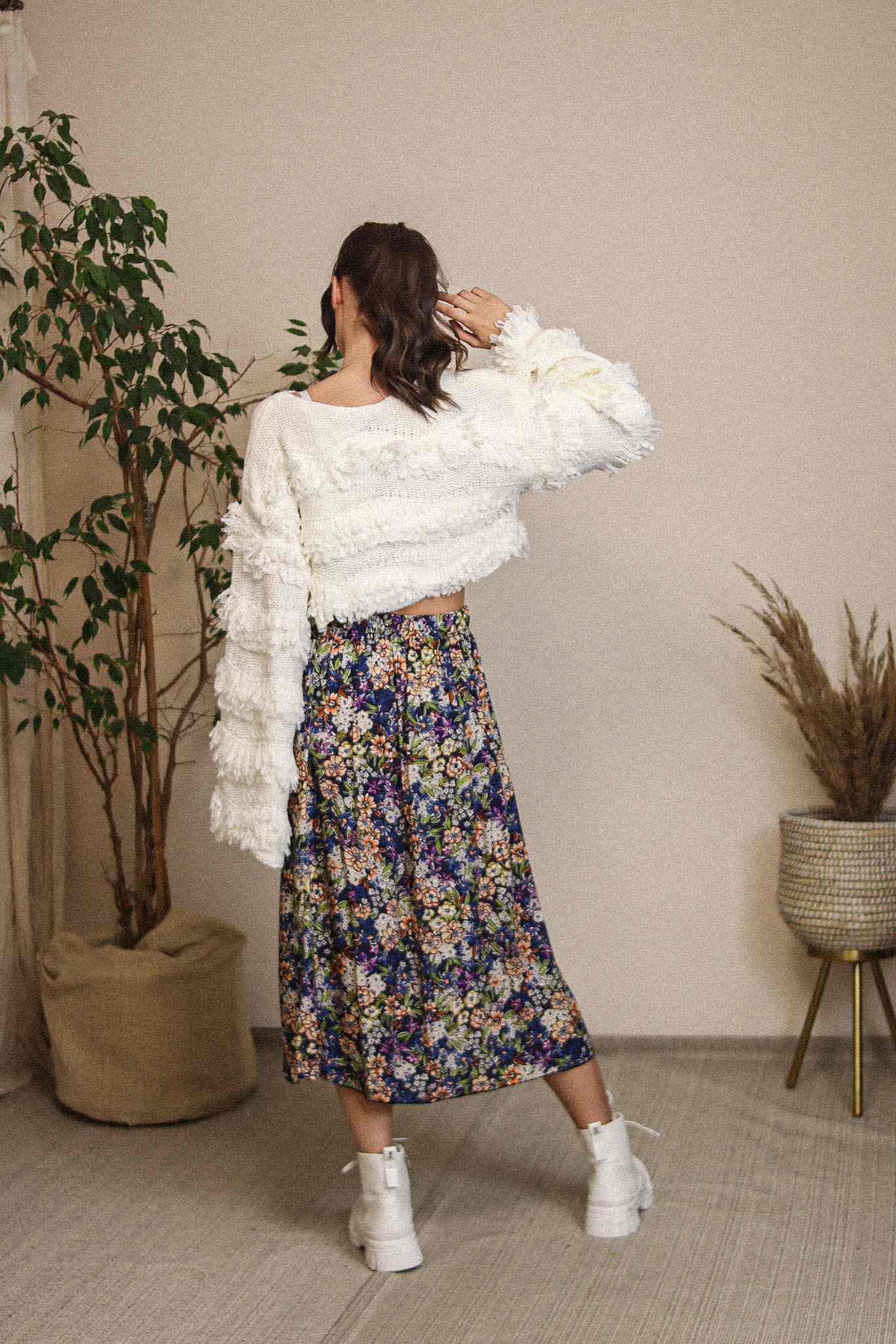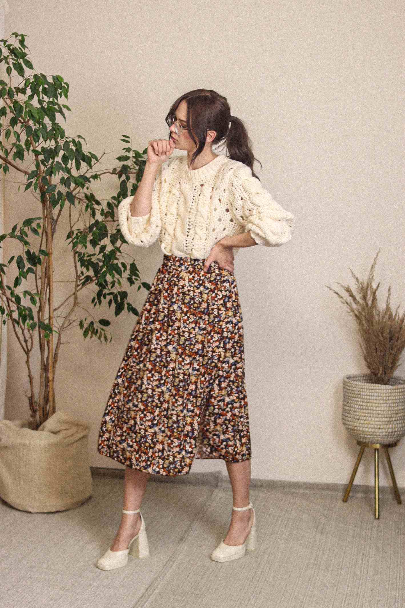 Sherardia – wiskozowa spódnica midi z rozporkiem