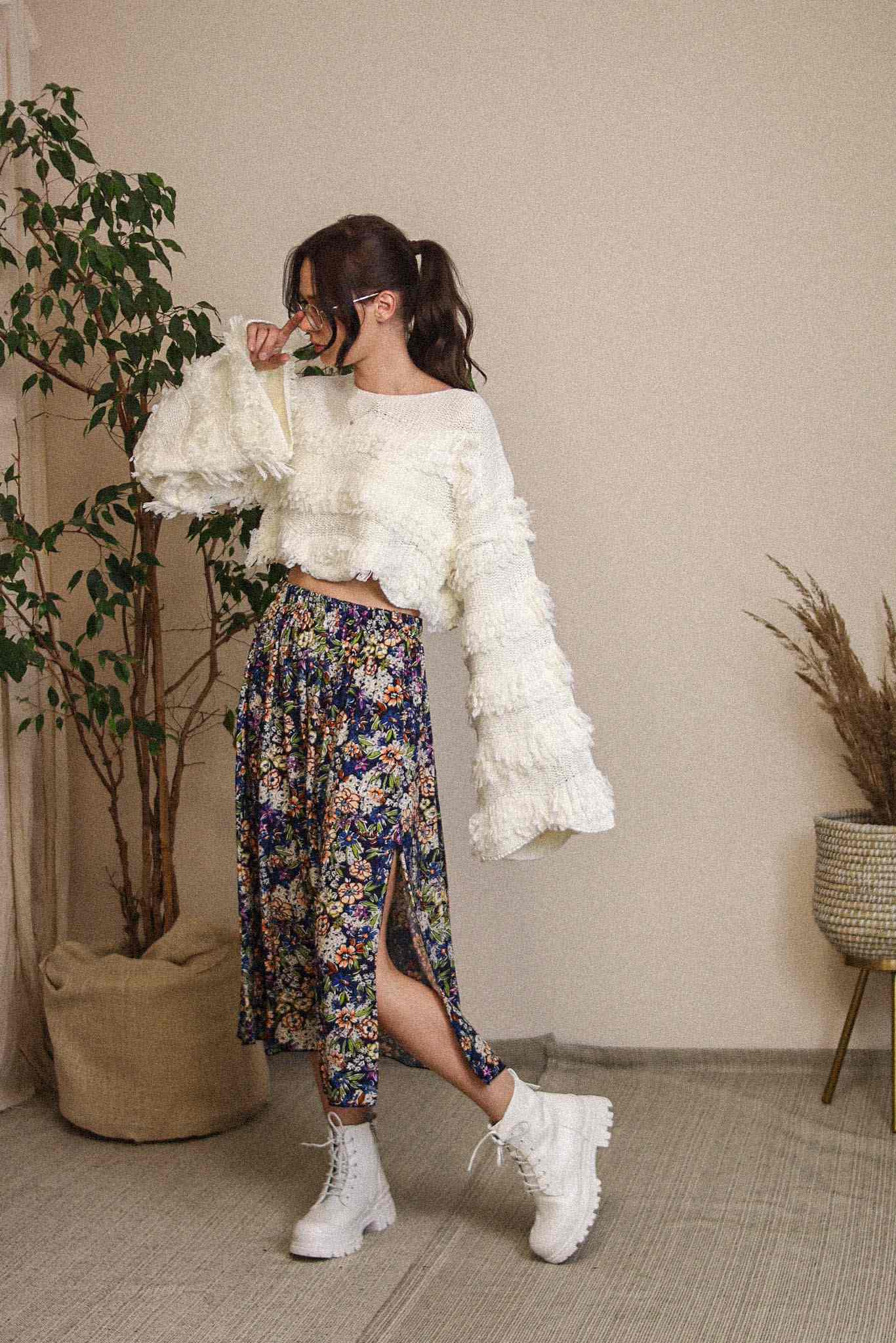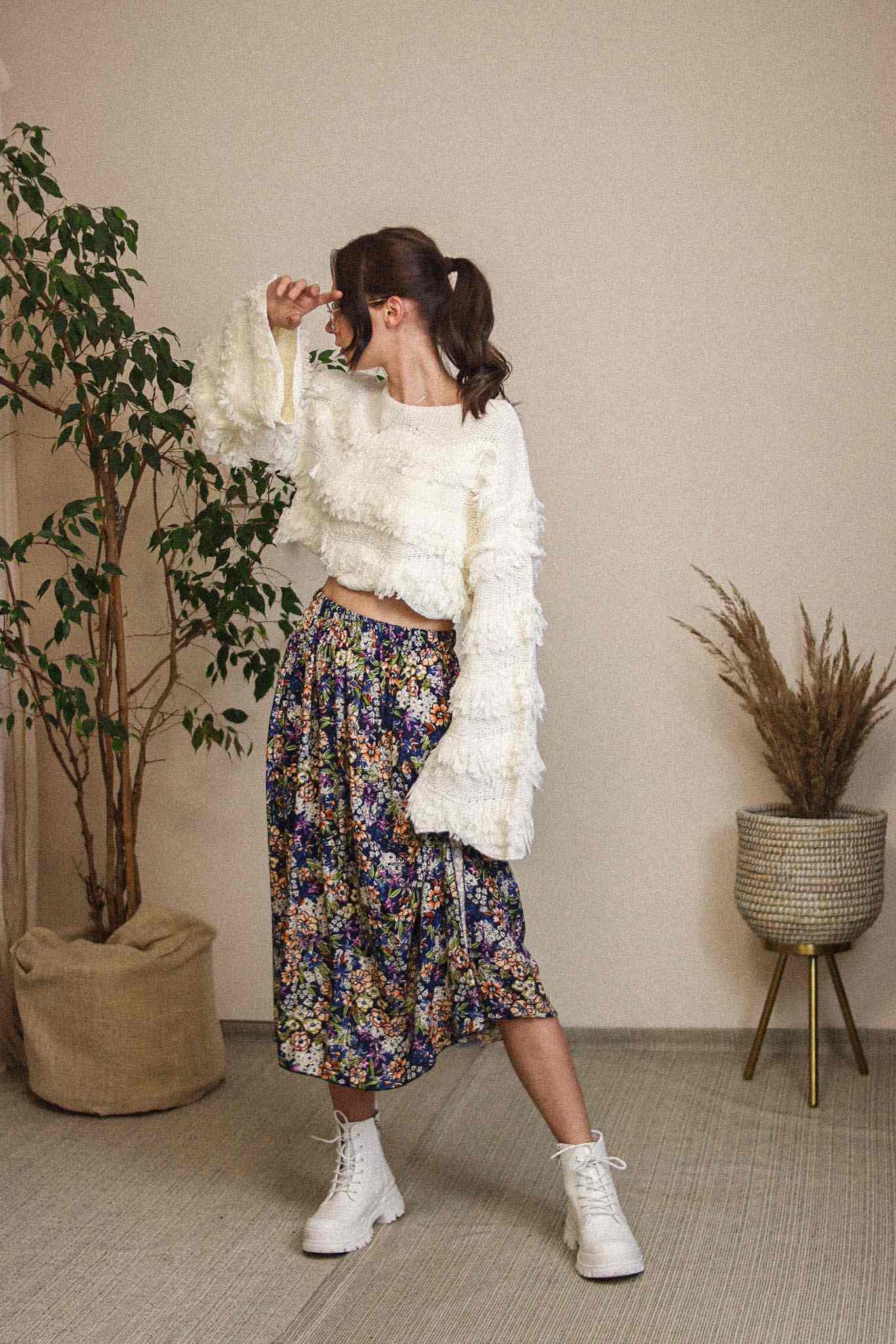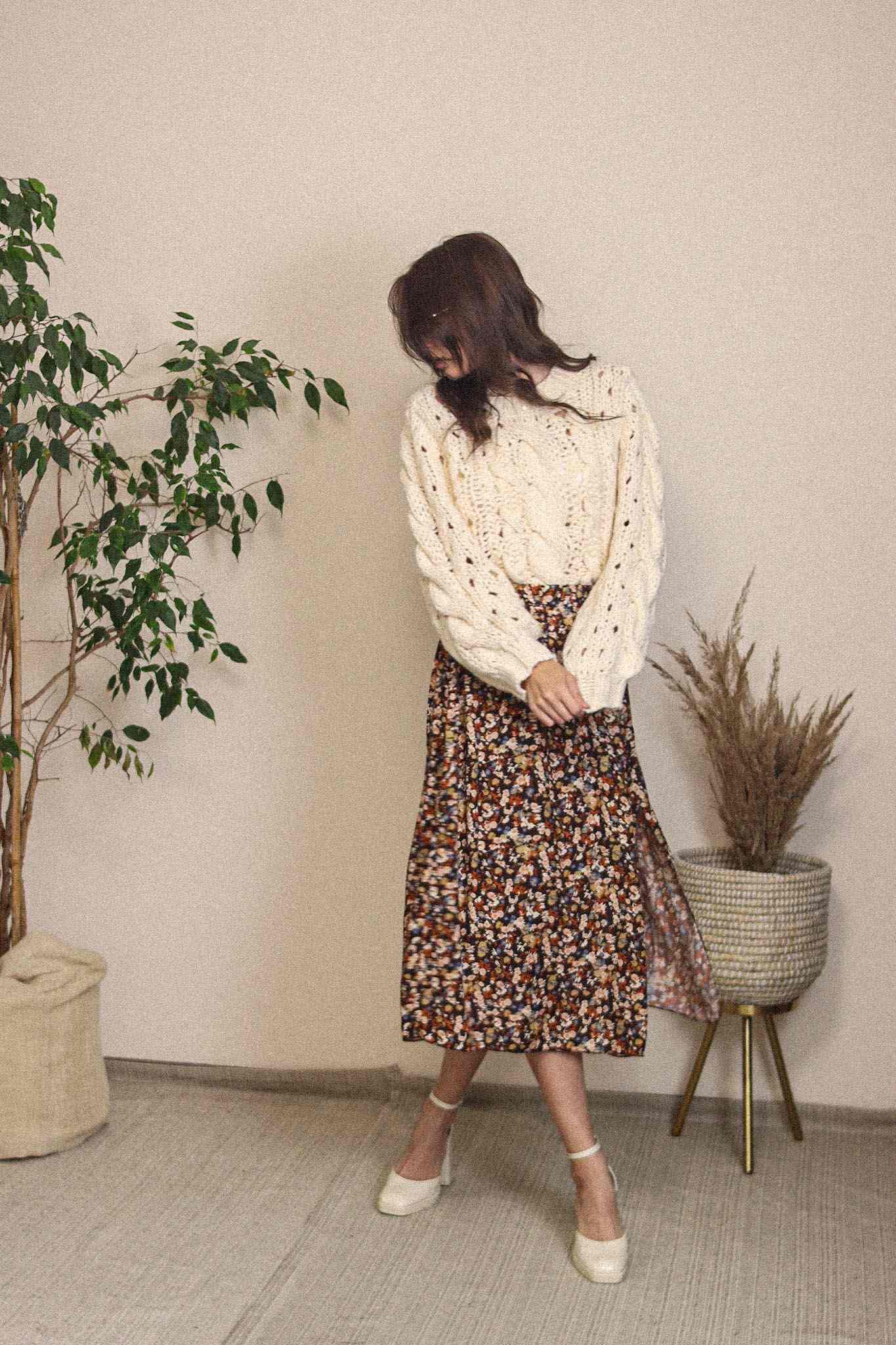 Sherardia – wiskozowa spódnica midi z rozporkiem