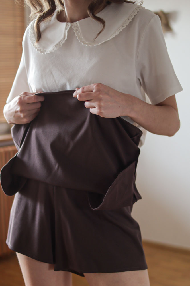 Mają kieszenie i gumkę z tyłu.