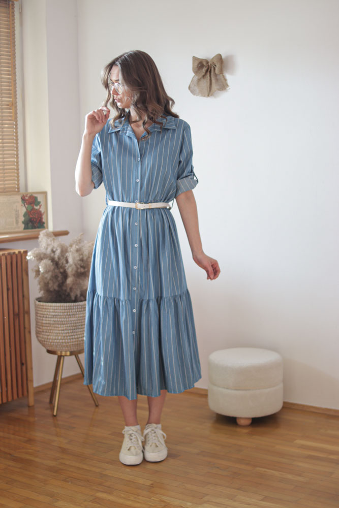Zaleya – bawełniana, długa sukienka w paski
