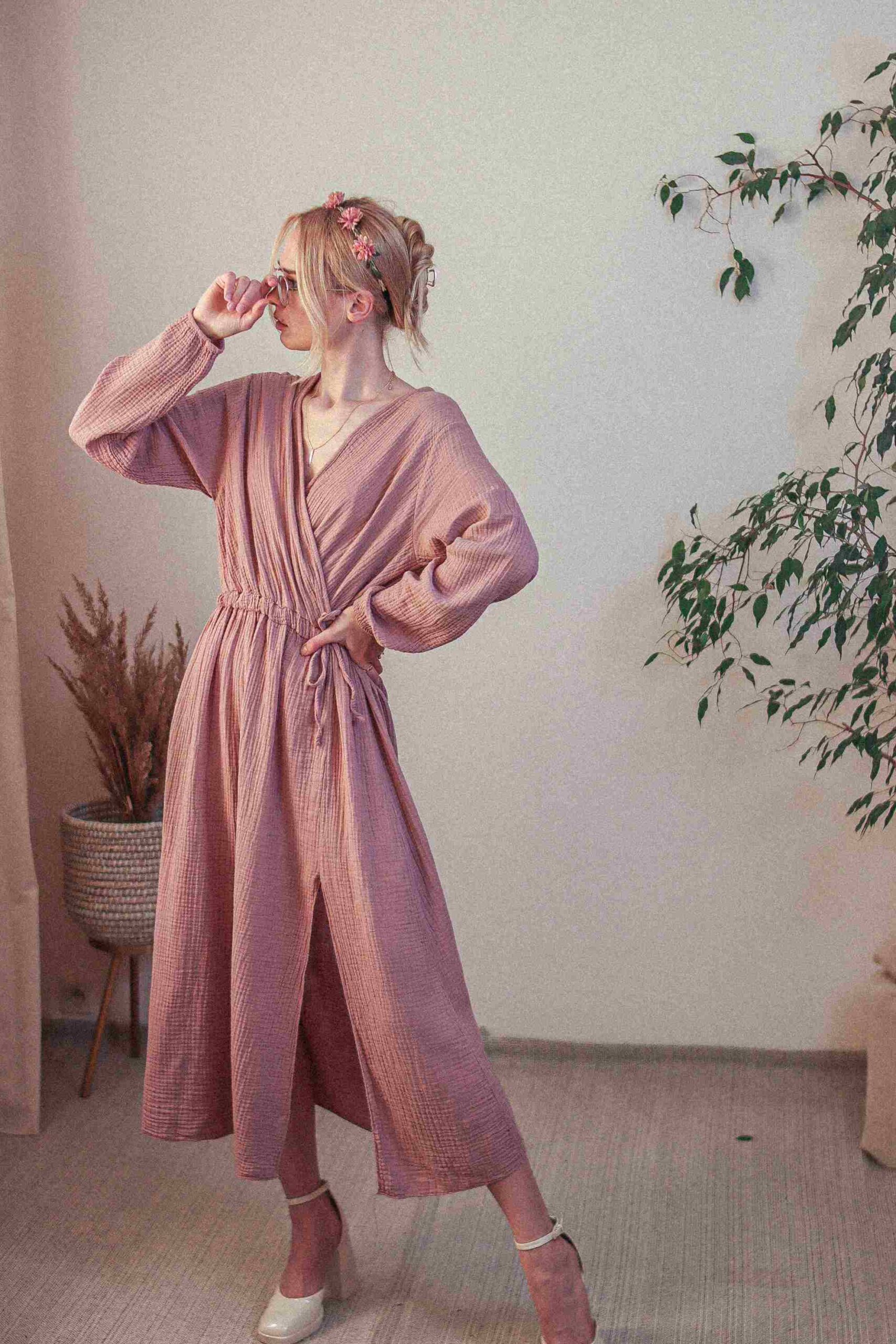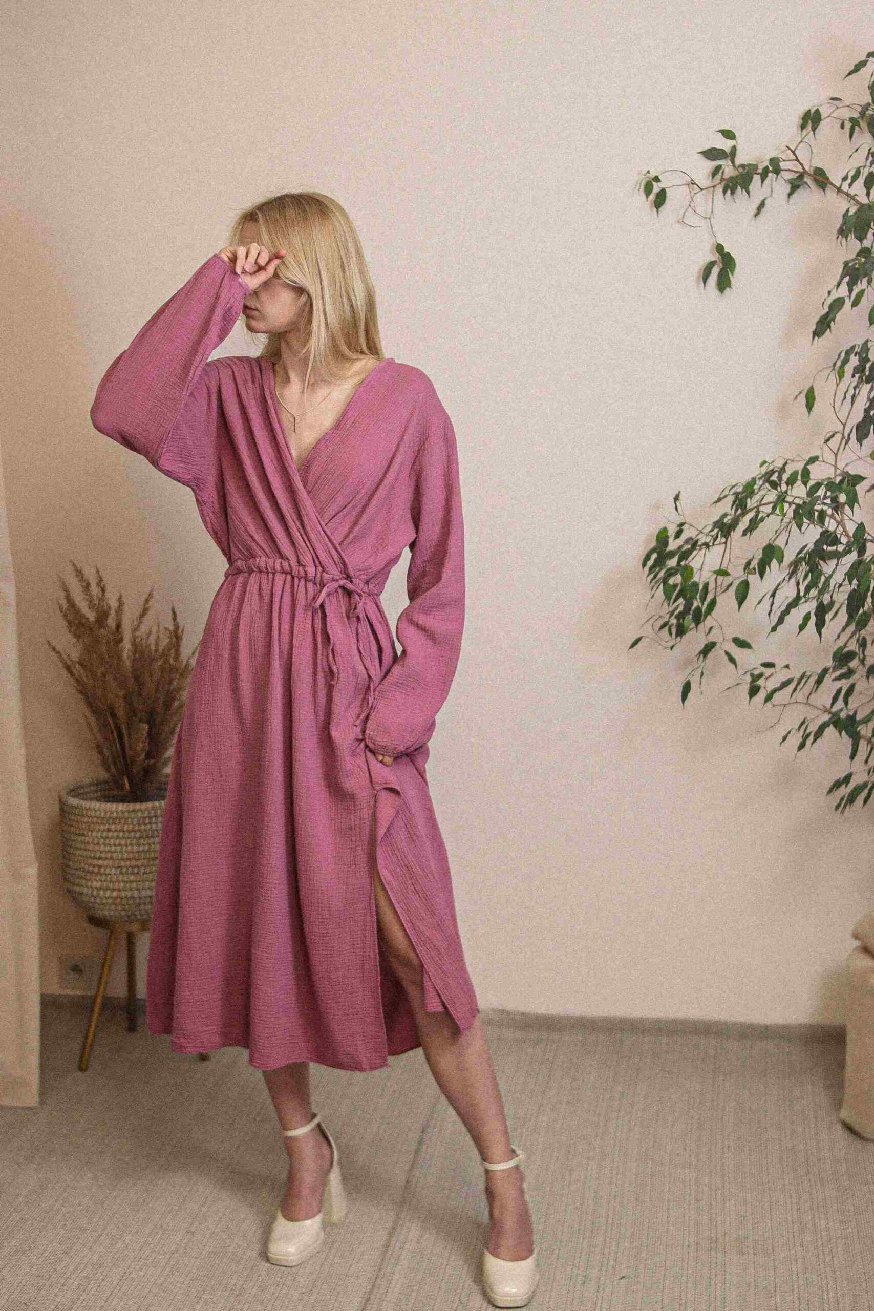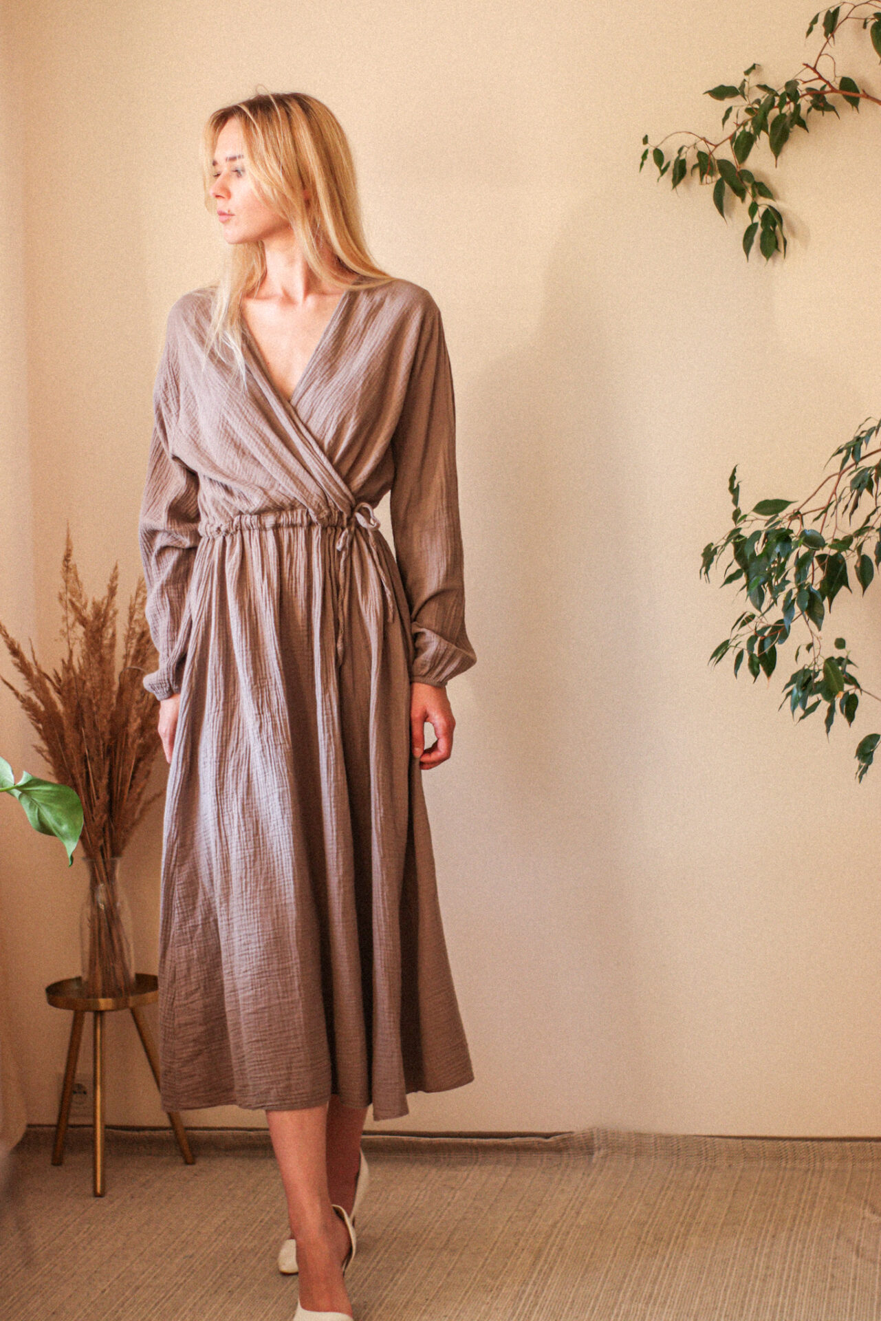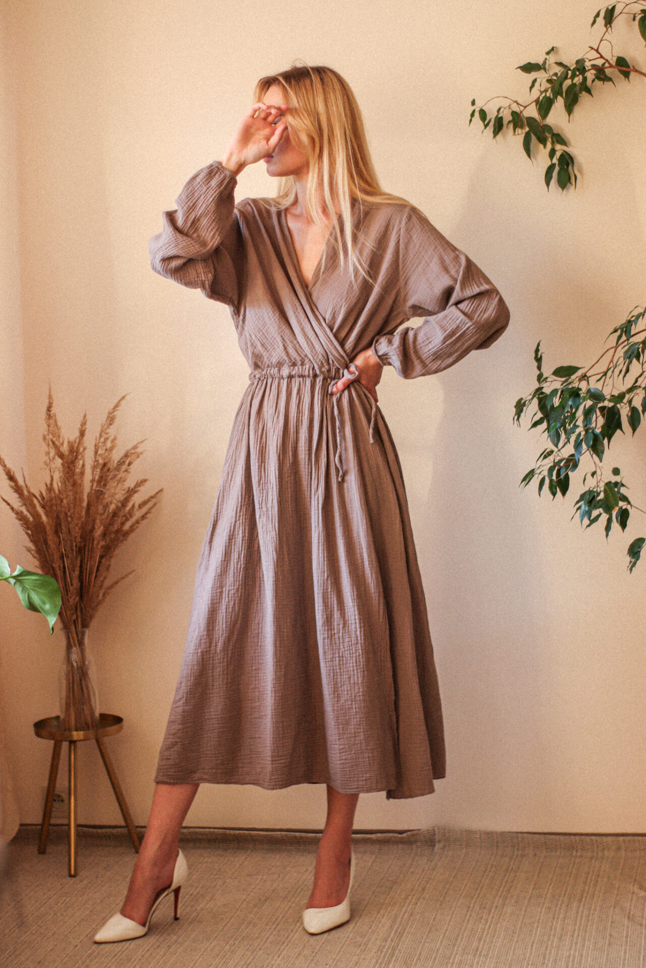 Zeostera Longsleeve 2 – muślinowa sukienka z gumką w pasie