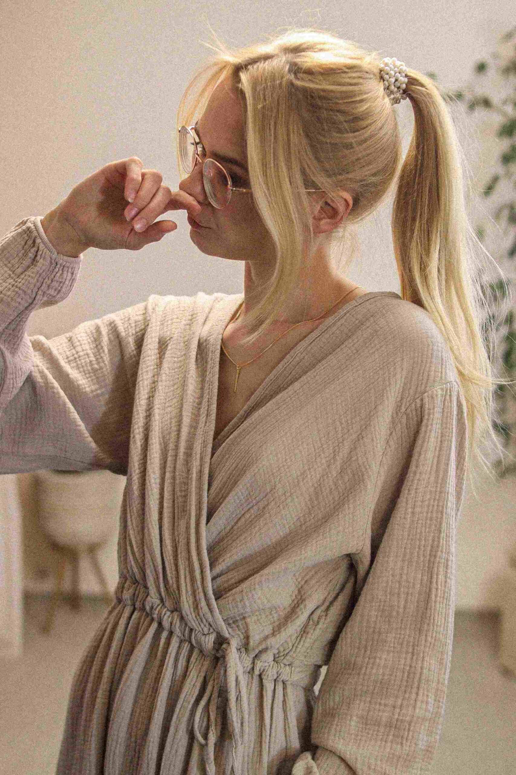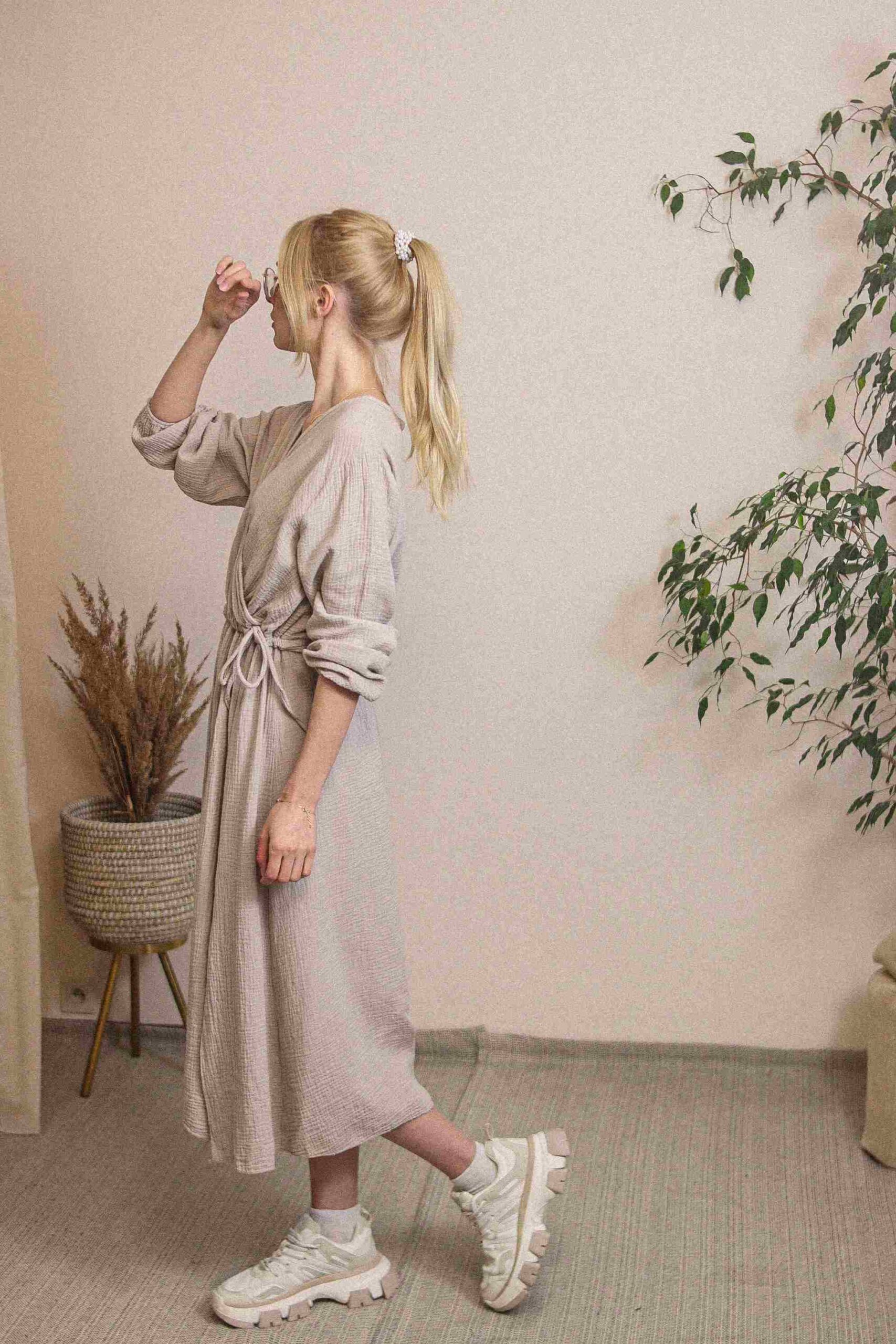 Zeostera Longsleeve 2 - muślinowa sukienka z gumką w pasie
